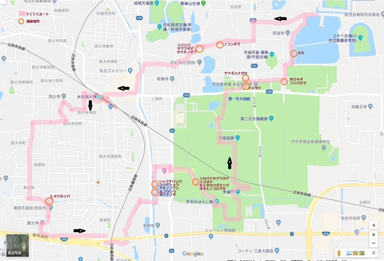 🔸 モデルコースは西大寺から薬師寺や唐招提寺の在る西の京を経て平城宮跡に至る9km程度のコース取りですが、私は道草が多くて時間がかかるので、西大寺から菅原天満宮、喜光寺(菅原寺)を経て、その先はショートカットして平城京跡へ向かいます。