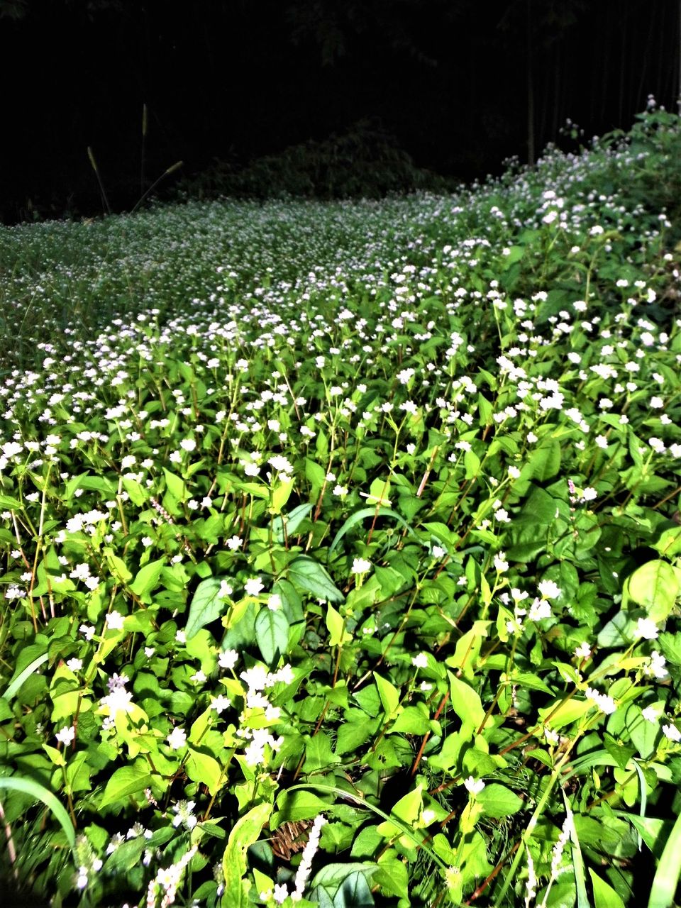 🔸 日葉酢媛陵にほど近い、大和超昇寺城跡の竹やぶの細道を通り抜けて行きますが、その手前の掘割の阯と思われる場所一面にミゾソバ(溝蕎麦)の群落。