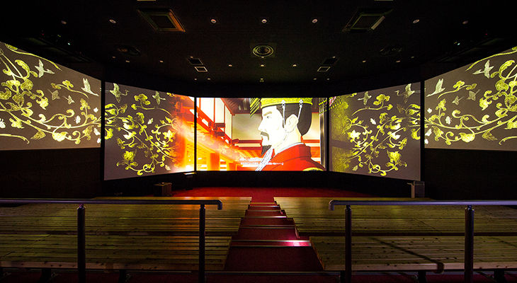短時間でしたが、素晴らしいCG!!左右にも広がる5面のスクリーンで迫力あるVR動画で広大な都大路の迫力ある シーンで始まり、物語風に「始まりの都」の様子が眺められ、後方の席でも臨場感有り感動。多くの方に観て頂きたいですね.。