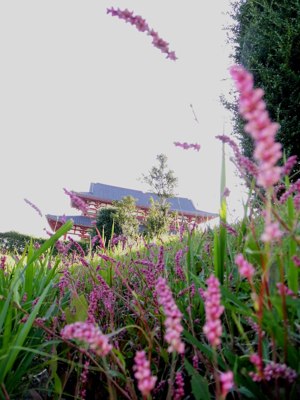 大極殿北側の道路を隔てた、案内図で「推定大膳職(オオカシワデノツカサ)」と記された場所。厨房関係のところなんでしょうかね。ここでも大極殿と朱を競うように、イヌタデの紅色が映えています。