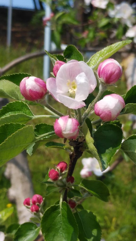 (4/30追記) 桜の花は、咲き始めは種類によって形、大きさそしてピンクの色合いに違いがあるけど、満開過ぎたらどれも色が抜けて白くなると、他のりんご園の方のブログに有りました。