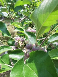 リンゴ園ではすでに、りんごの木に花は無く、実が成長し始めています。