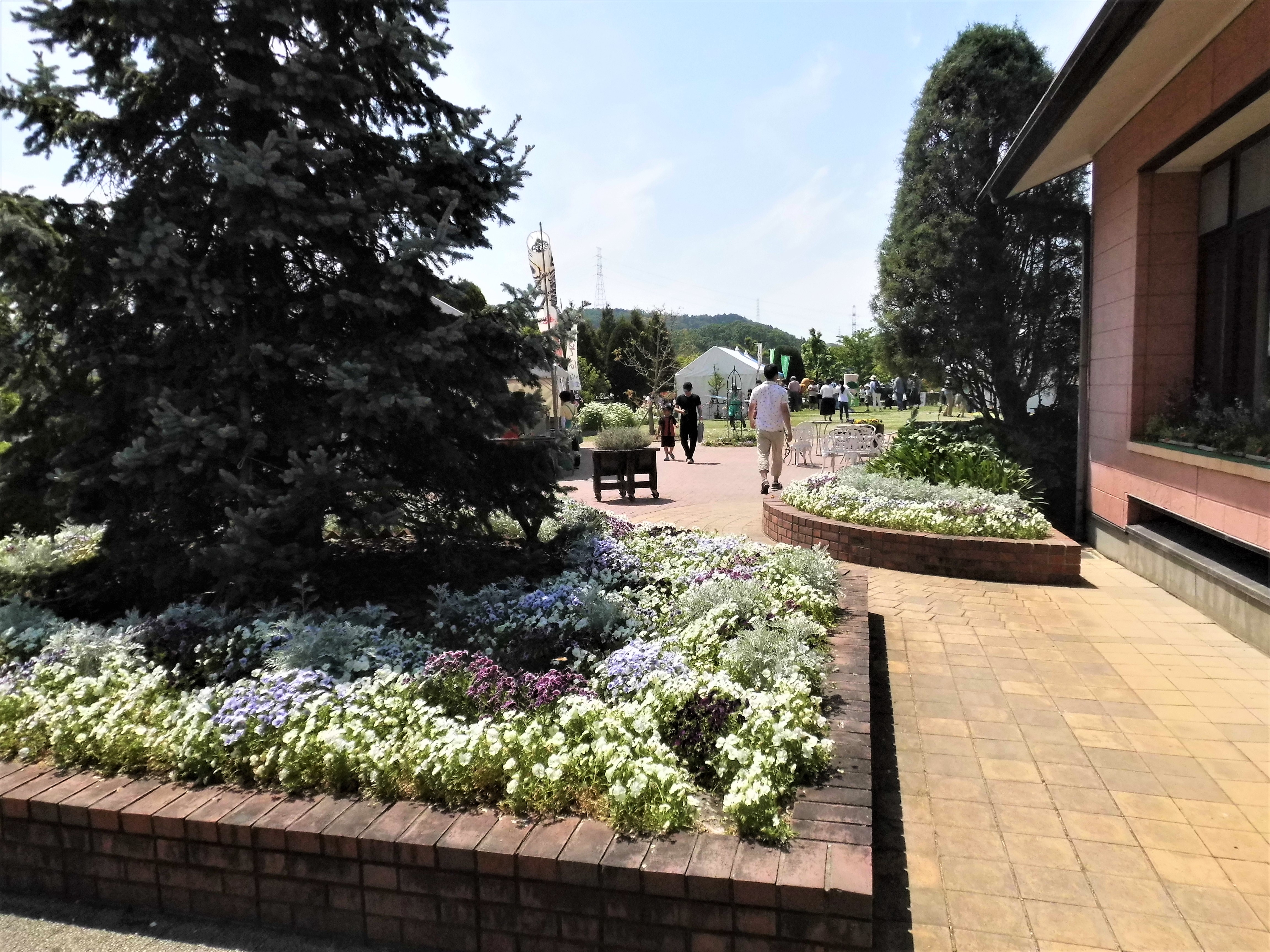 管理棟建物の壁際も、きれいにレイアウトされた草花で満ち溢れていて、さすが!!