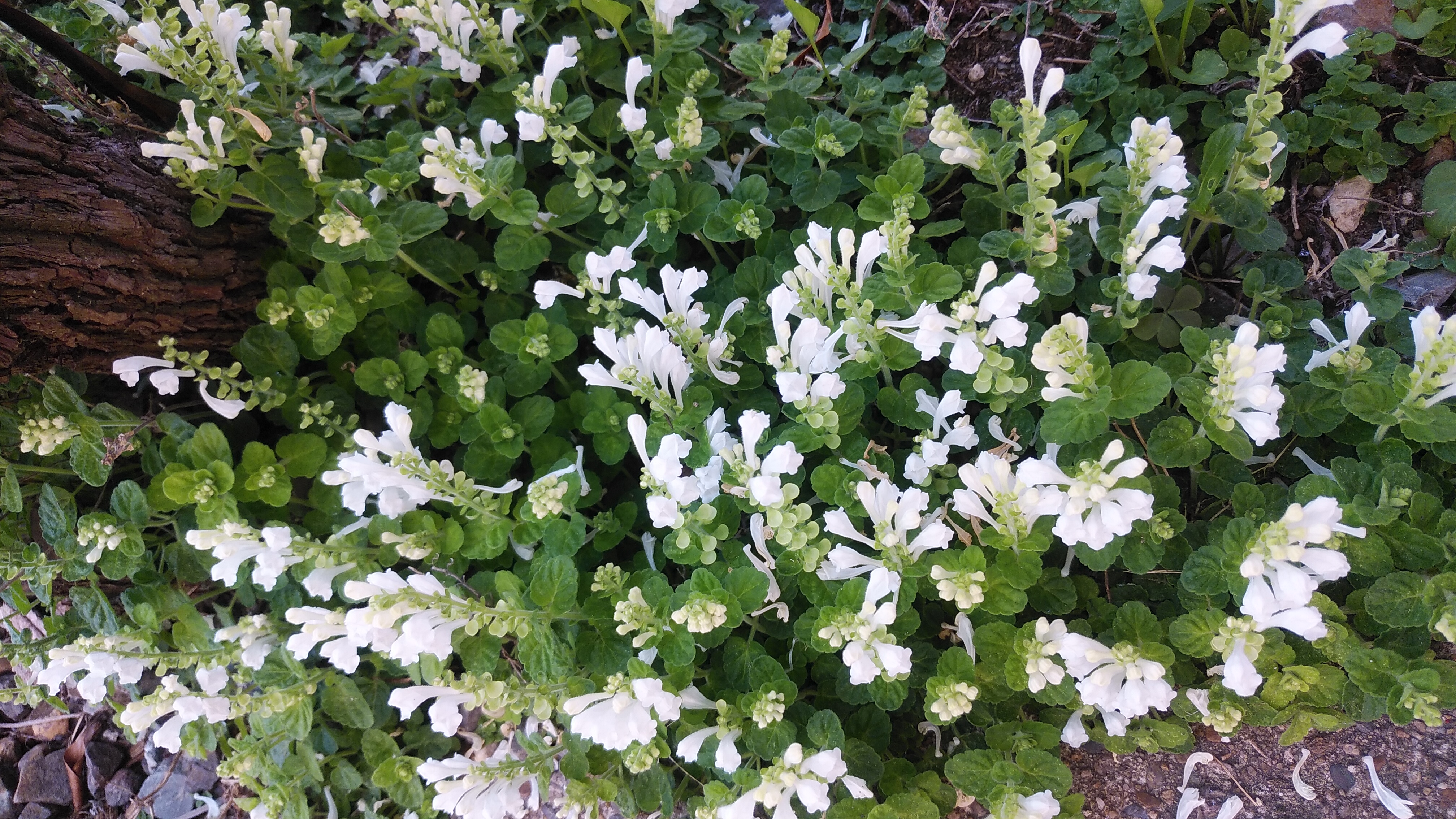 今回は、葉がニンジンかセリのような白花、オルレア(セリ科)が優勢に咲き誇ってる。