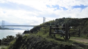 🚴♀️自転車旅の2日目の野営は、この橋の大三島側の付け根にある「多々羅キャンプ場」だったが、サイクリストの聖地 記念碑の建つこの地のイメージにふさわしくない、サイクリストキャンパーの私には★一つのキャンプ場でした。(-_-;)