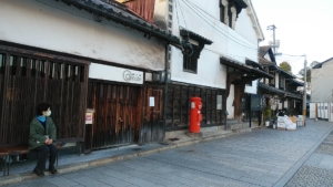 観光客は少なく、赤円筒ポストの立つ「いろは丸展示館」は閉館。