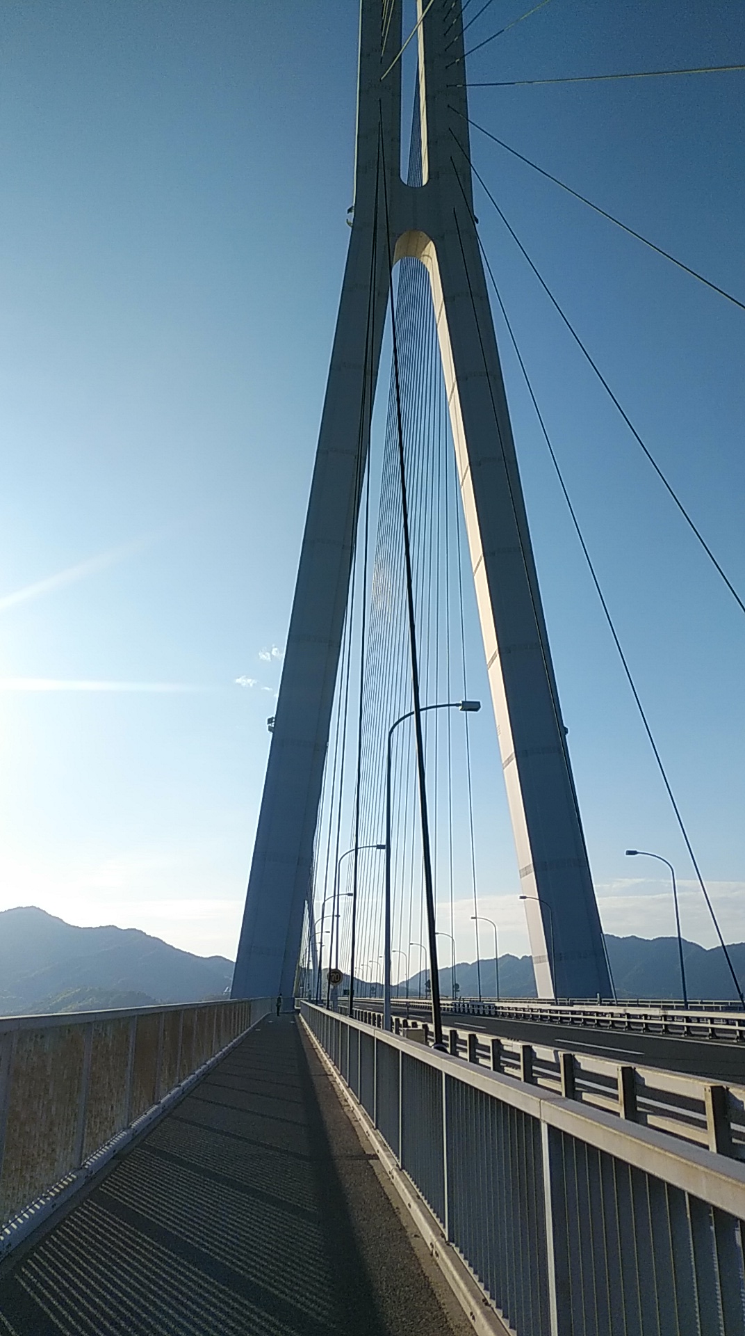 それは、生地島手前の大三島間にかかる「多々羅大橋」の橋塔(主塔)まで歩くこと。