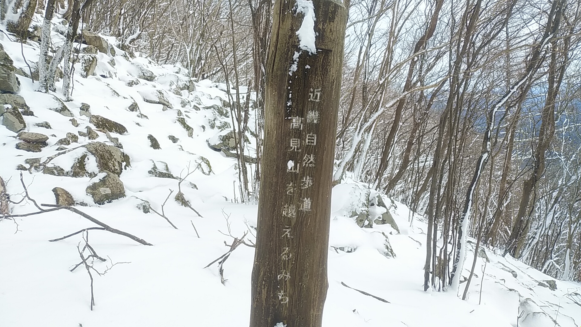 「近畿自然歩道 高見山を越える道」の標識。高見山山頂~大峠~三峰山とつながってるんだろうね。 AM10:50