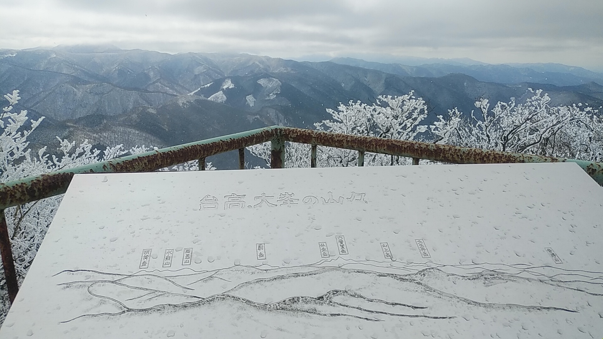 南~南西方向の台高・大峯の山々を示すガイドボード。方向はわかるが、山は同定できず。^^;
