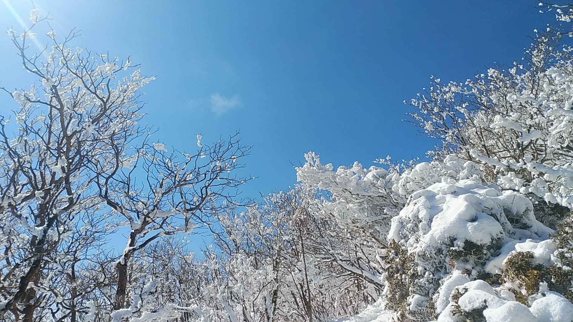 🔹 このあたりから、一段と映える美しい霧氷が続く。 AM11:35