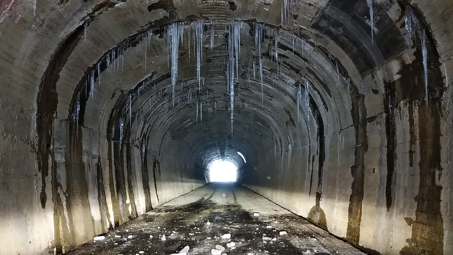 🔹 旧道トンネル内のツララの長さは変わらないようでしたが、路面に落下した氷片が増えていた。こんなのが走行中当たったら、、、そっと通過し、名残の雪道を楽しみながら家路へ。 、 PM 4:00