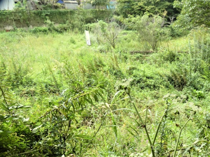 車の向こう大きな木の右側が、水場から登ってきた出入口。