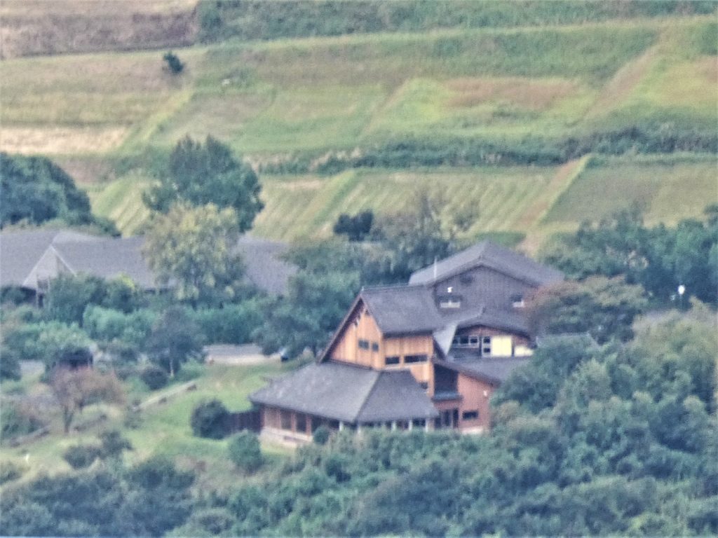 「宇川温泉よし野の里」温泉施設とレストラン、売店などの棟屋…奥の左手に宿泊施設。