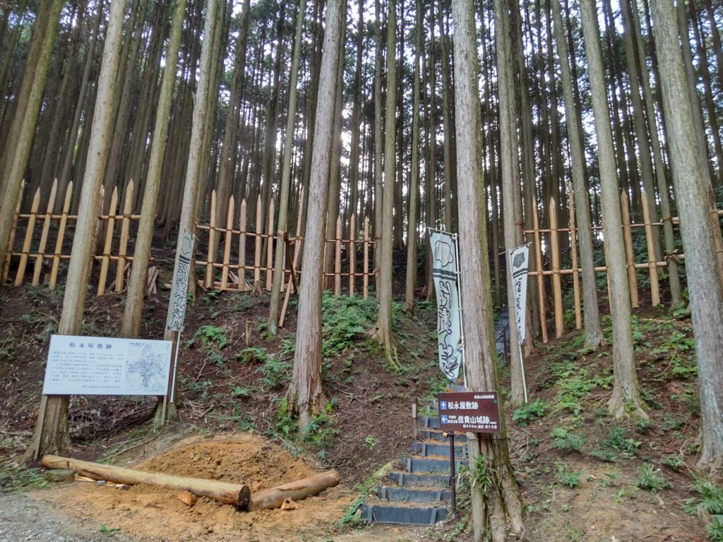 ・一方、信貴山城址研究会が整備活動を続ける城址・松永屋敷跡虎口の一部に、山城のイメージとして設置を進めていた城柵が、このタイミングに合わせるように完成。