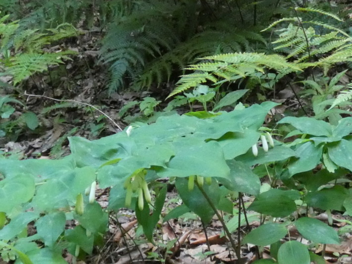 あれ?葉は丸っこく、茎はツルッとしてなくアマドコロみたいだけど、花の姿はナルコユリ…