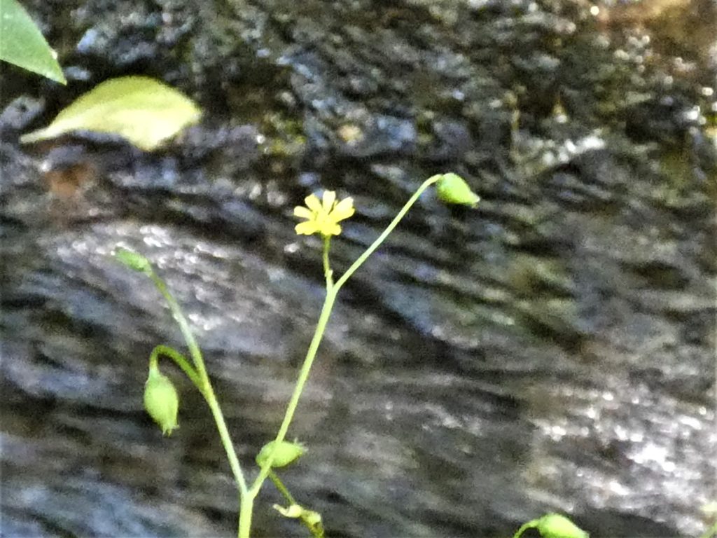 小さいお花…タネツケバナ(種漬花)っぽいが、花弁は5枚で小さく、果実は短い…仲間の多い野草だね。