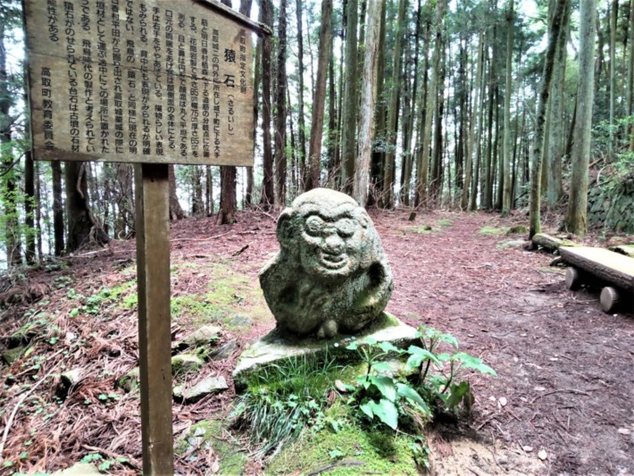 高取城築城の際に重臣本田利久が、城の守護を意図してのことか、石工たちに命じて彫らせたという説が有力…らしい。