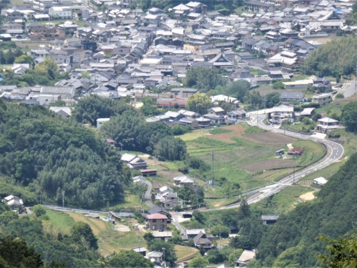 下方には、土佐街道に沿った高取の家並み…手前の県道を越えて、ここまで来たんだ😄💦