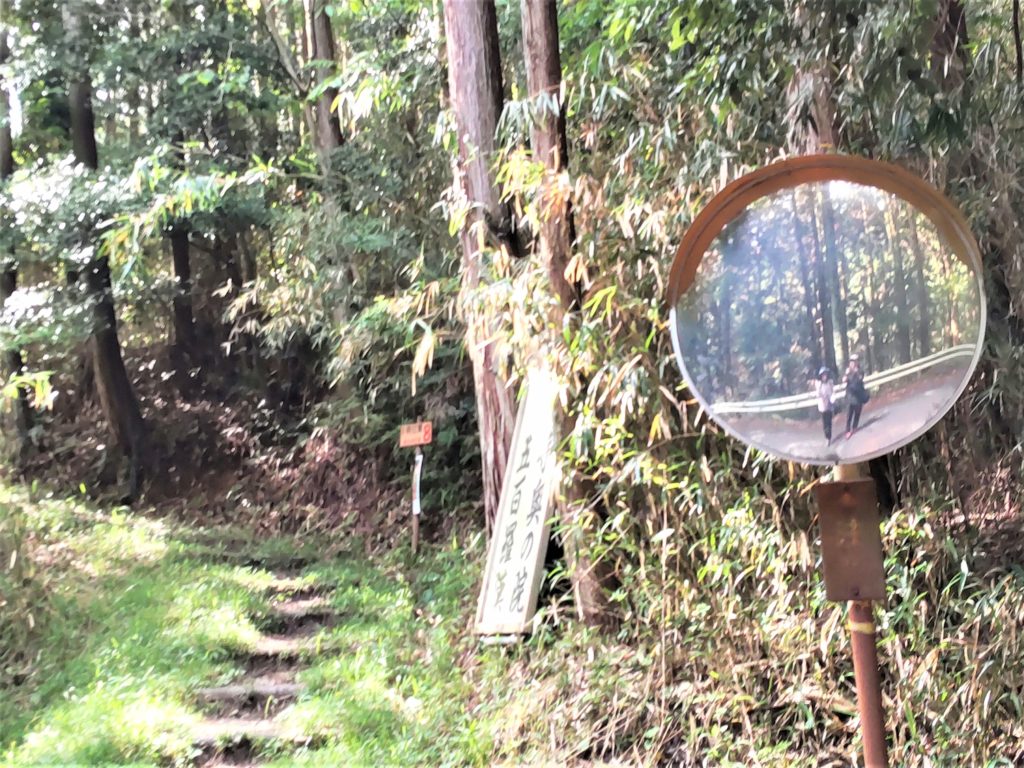 🔹下りゆくと、程なく高取城跡へ至る県道119号線…カーブミラーがあったので、ミラーの初"自撮り"…へへV