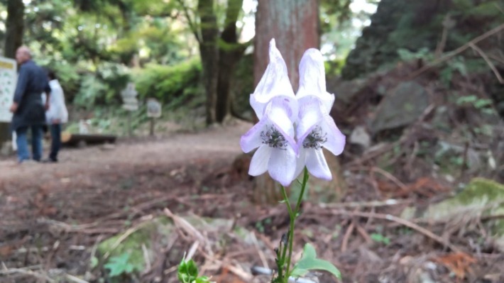 「三の丸」石垣沿いに…トリカブトの群生。