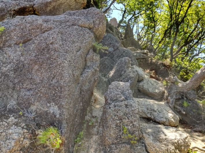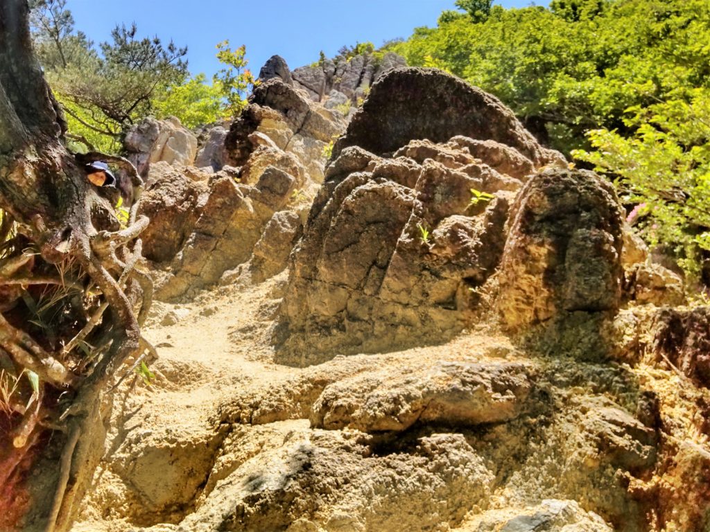 “そこ山"で本上まなみさんが登った、おばれ岩や地蔵岩のある中道コースはあの下辺りか…
