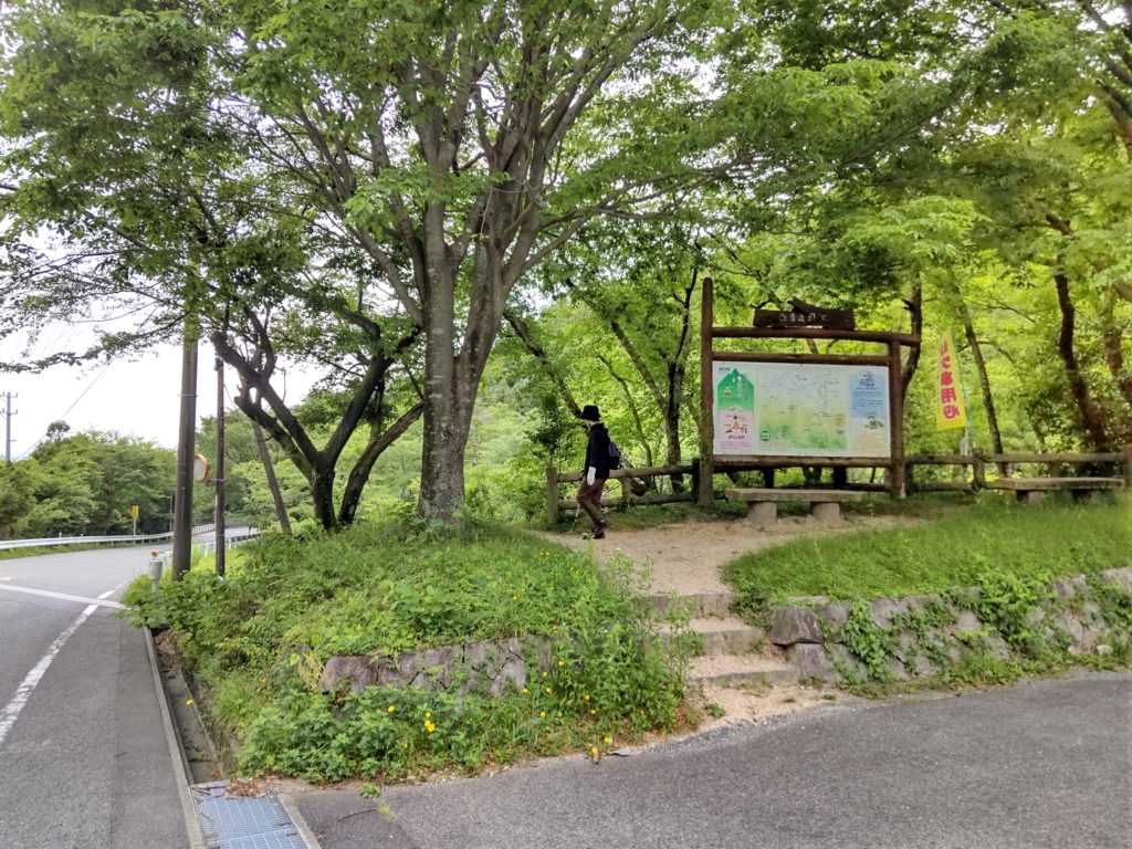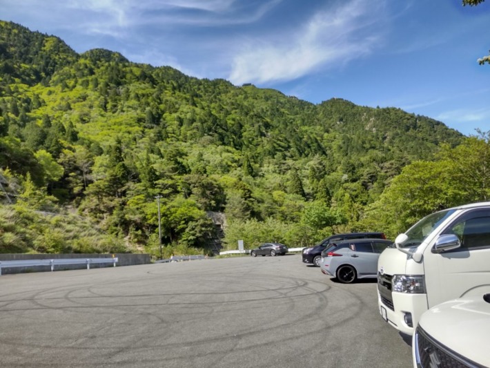 鈴鹿スカイライン(国道477)武平峠トンネル手前の広い駐車場着…土日は駐車場所争奪戦らしいが、平日のこの日は、谷側だけがほぼ満杯。10:20 トイレ🚻あり。