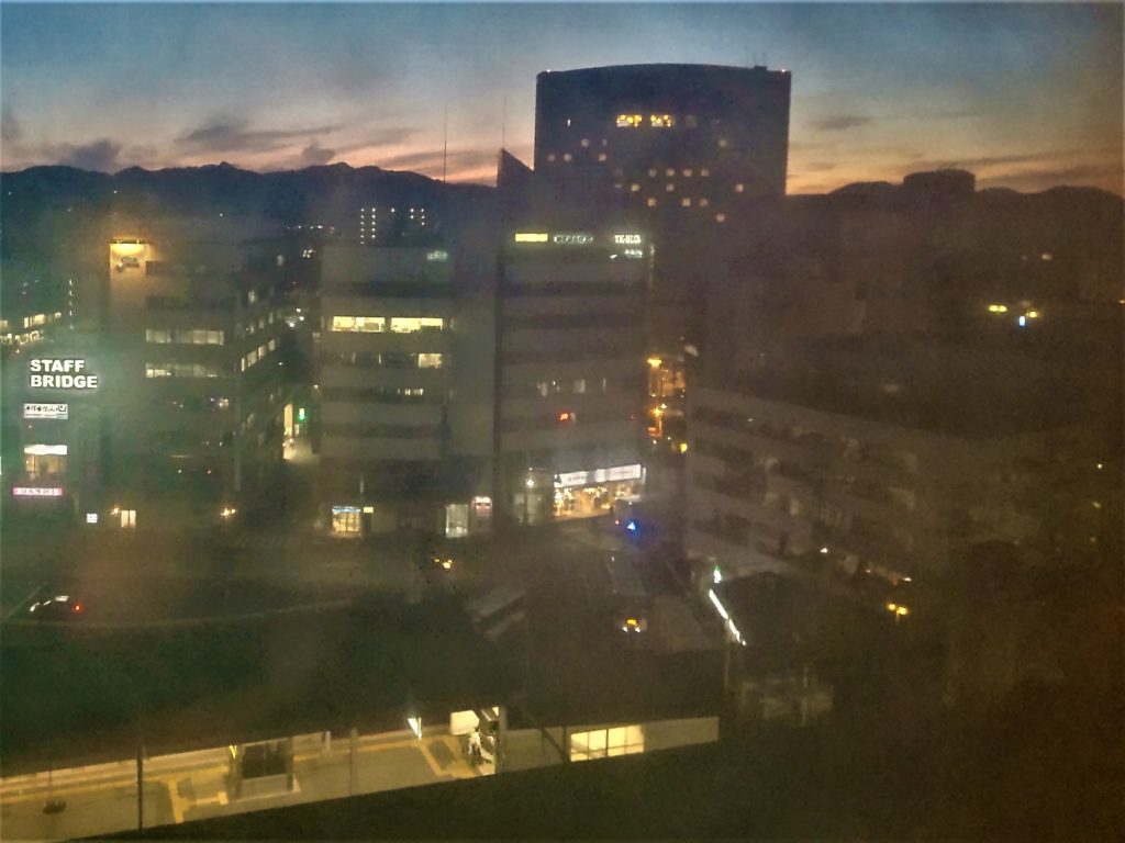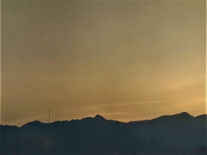 🔹夕暮れの近鉄四日市駅上方から鈴鹿の山並み… 左手に名山の居並ぶ「鈴鹿セブンマウンテン」が在るのだろう…右奥は伊吹山か…。