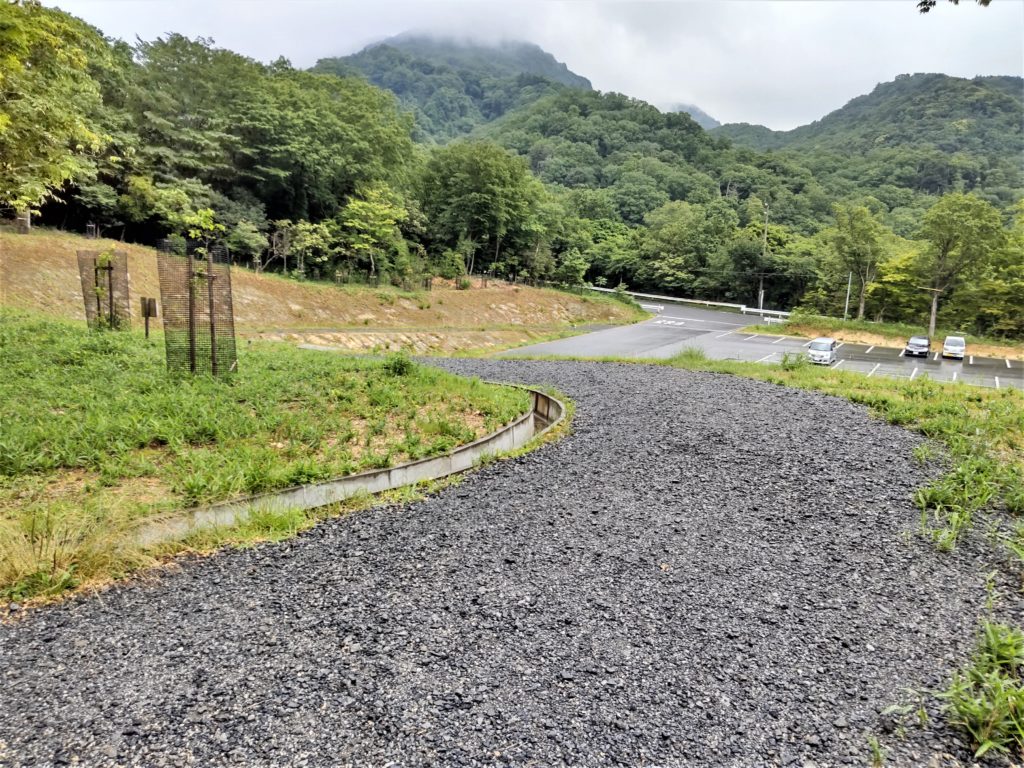 🔹のまま進むと最初の広い🅿方向なので、車道の近いところで踏み跡ないところを車道へ下り、上の🅿へ。