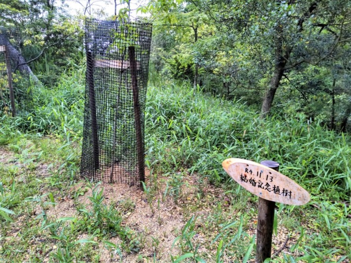 🔹「ふるさとの山プロジェクト」植栽記念の木板と、不明なコンクリート柱?の立つ方向から下りることに。