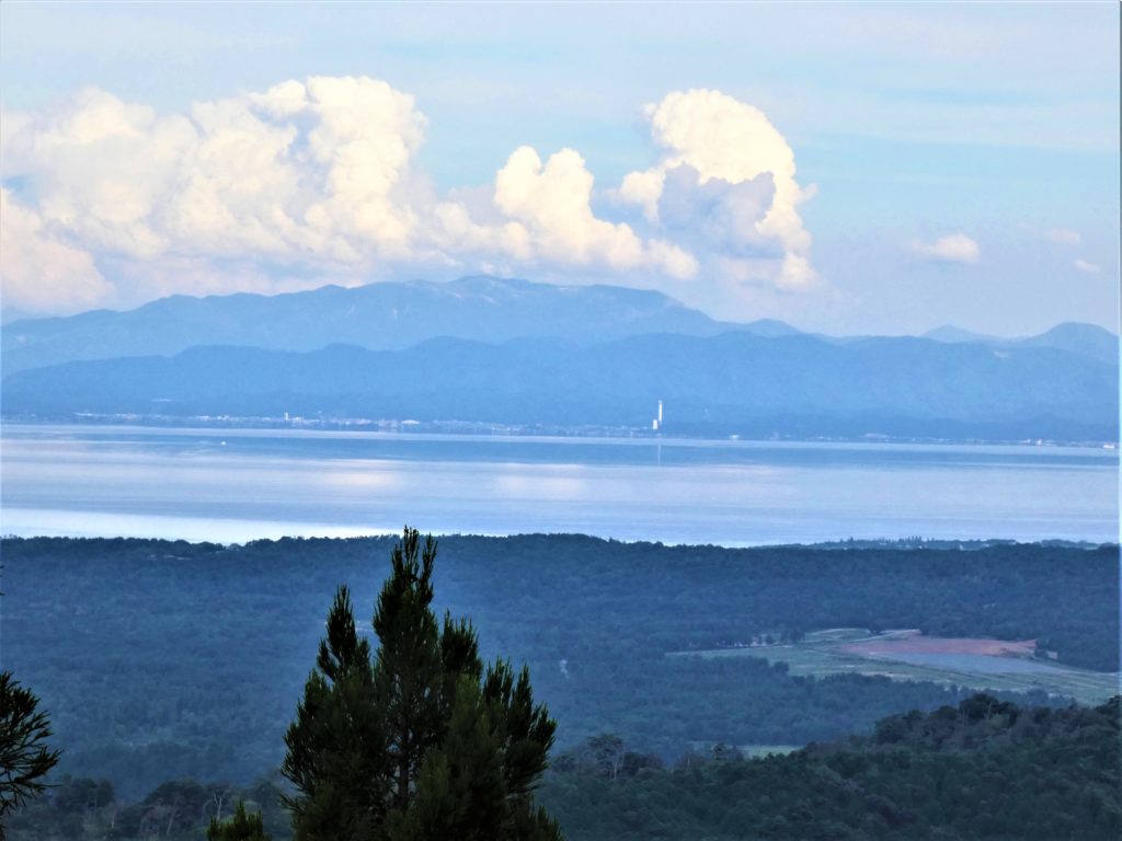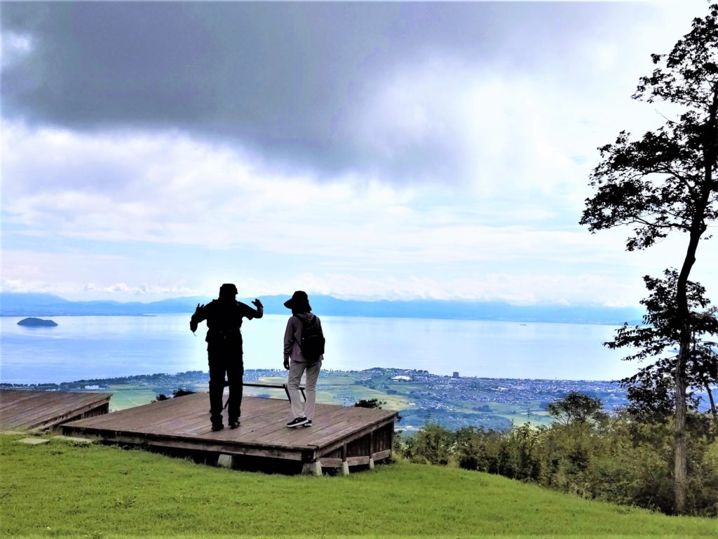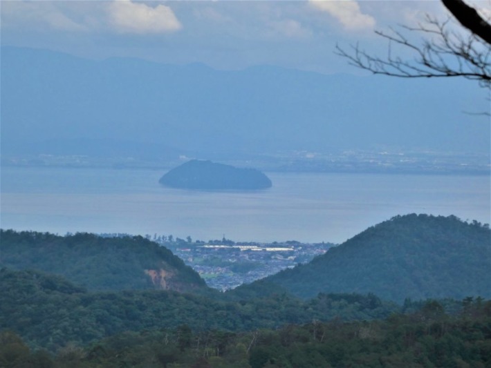 モヤも晴れて、帰路の眺望スポットからは20kmほど先の湖上の竹生島、40数km先の伊吹山もくっきり…..