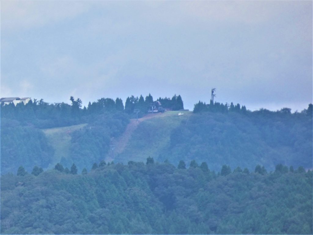 更に南東方向の山並み向こうに、塔とスキーコースらしいのが見えるという…肉眼では指差す方向に確認できず、望遠で覗き探すと…確かに鉄塔と建物…..