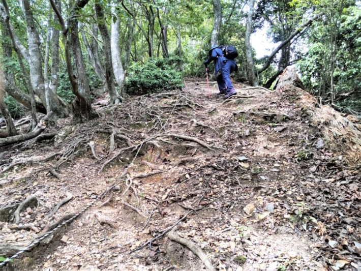 🔹登山道は一度下ってからニの山山頂へ向かうが、山頂に近づくに連れ急登…吐き気も伴うほどヘトヘトに疲れてきたので、山頂まであと少しだが東側水坂峠からの合流点手前でターン…