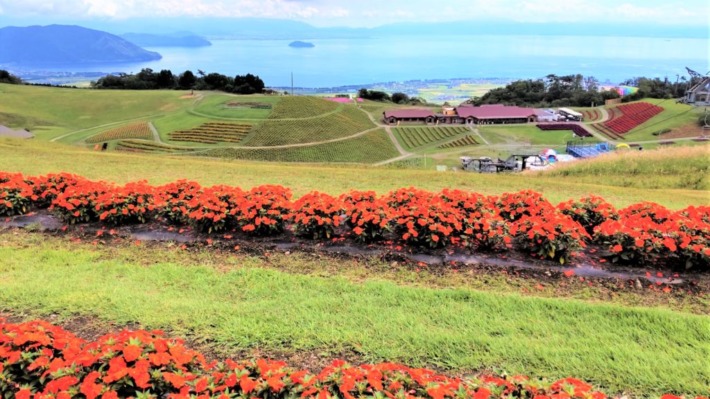 サルビア、ベコニア、コリウス、ケイトウ、ひまわり等見頃のお花が広がるアップダウンの園地を、乗り放題リフトも利用して、楽しく散策🚶♀️🚶♂️できました🎵