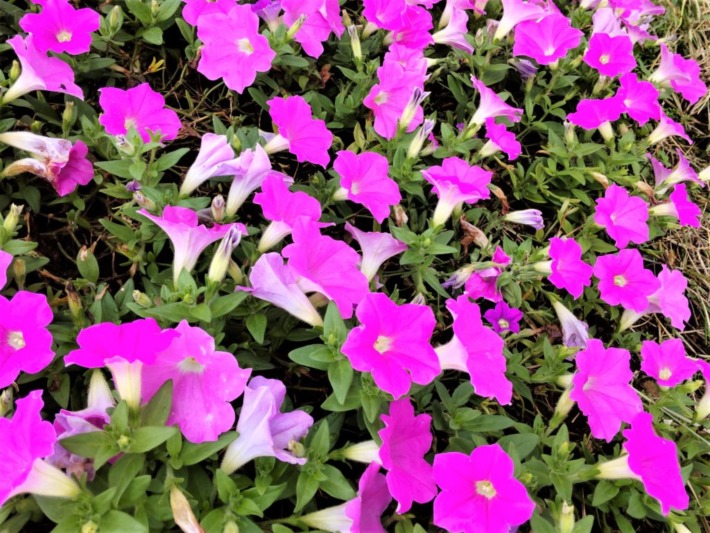 「ジップライン」や「巨大ブランコ」のあるこちら側にはサンパチェンスの花壇が連なる。