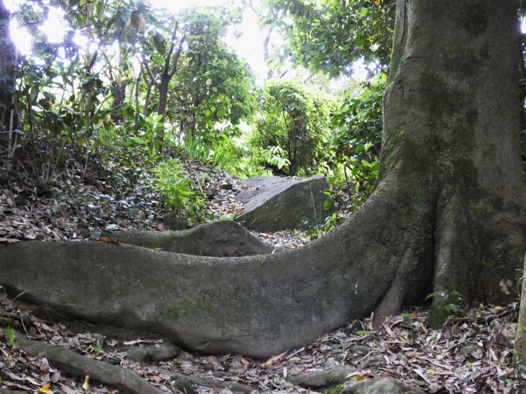 渡渉したすぐ上に、でかい板根…ブナような木肌みたいだけど..スダジイ?アカガシ?