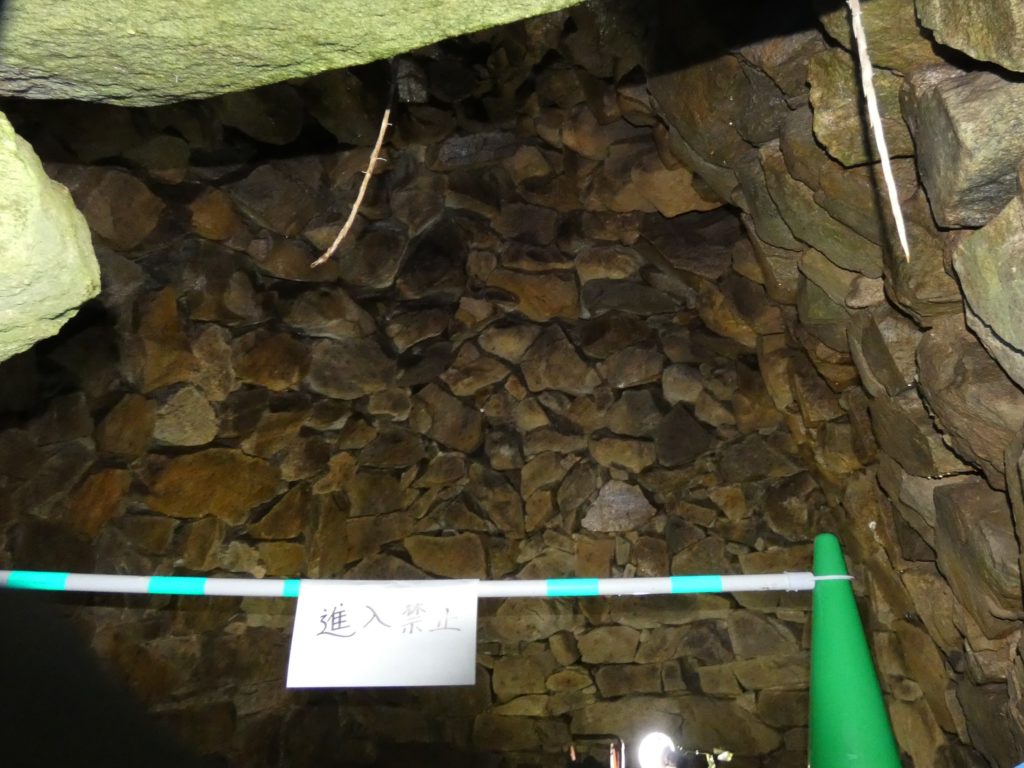 腹ばいの半身で見学できるが、ドーム型に石を築き上げた特異な構造。