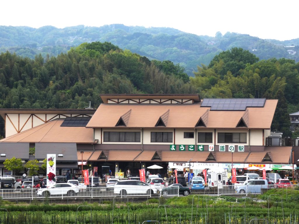 戻る途中、小菊畑の向こう国道168号線沿いに「道の駅 大和路へぐり くまがしステーション」…そこもイベント会場で賑わっている様子。