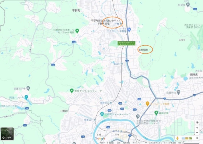 さてと…ビッグ平群店で軽食ゲットし、東側の裏手の旧道を椿井城跡へ…
