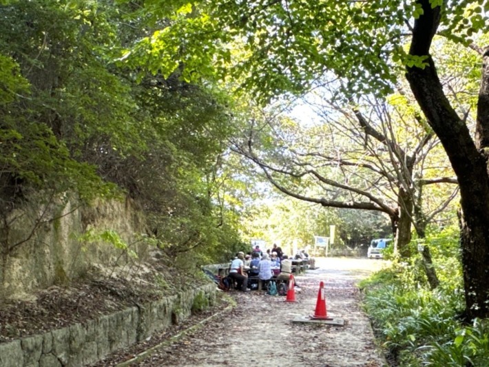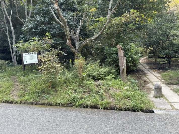 🔷休日なので、よく利用する「津田サイエンスヒルズ」西側の4台しか駐車できない国見山登山口🅿は無理と考え、休日なのでヒルズ東上方の「森下仁丹前」バス停のすぐ近くに路駐…休日なので企業も休みでバスの運行がなく往来もほとんどなく、しかも登山道入り口に接して便利なので、登山者や国見池の釣り人が利用。
