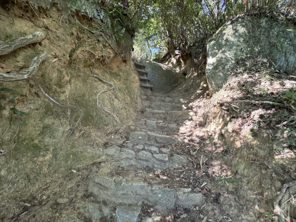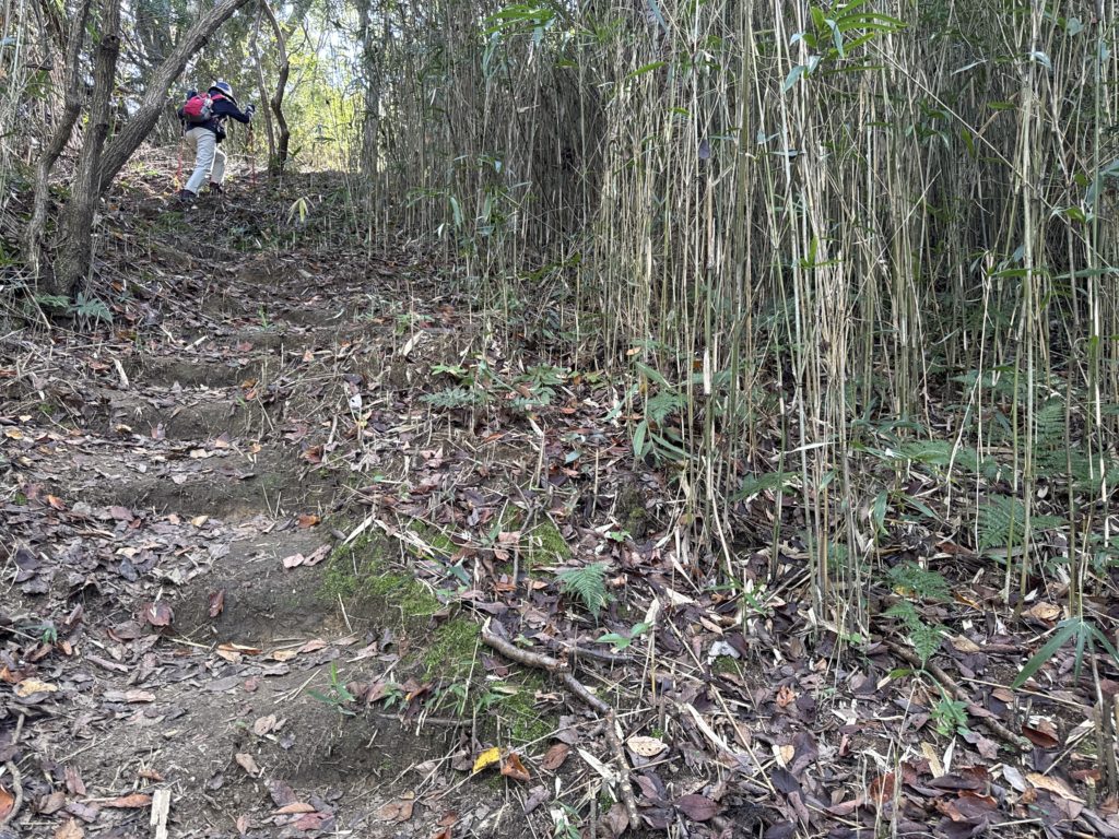 藪を切り開き地道を削って階段にした登り…右には緩やかな回り道も造られているので、楽に進める😄