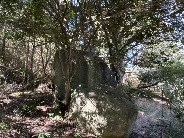 大岩が散見される心地好い小路を歩む下方から、楽しそうな話し声と、軽快な打球の音🏌️‍♀️…3番ホールのティーショットだね…思わず "ナイショ~"…見えへんけど 😁