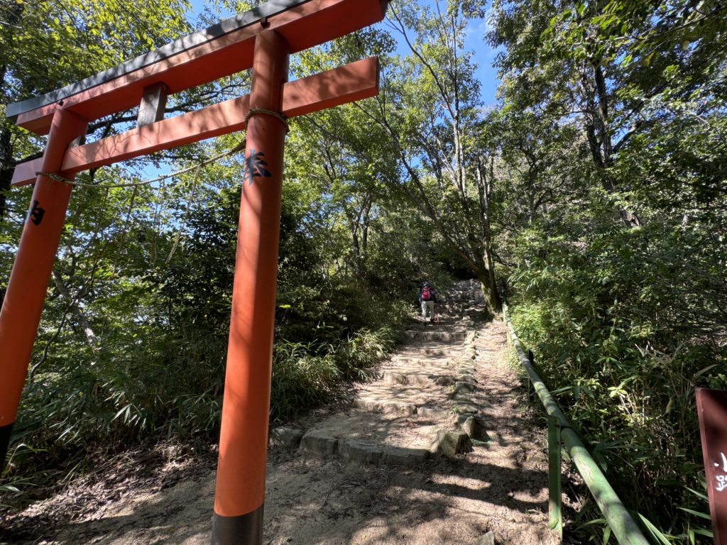 🔹いこいの小路」は交野山山頂を巻いて、「交野山三宝荒神」ニの鳥居の立つ「ヤマカゼの小路」に合流…緩やかな石段の先に…「いこいの小路」は交野山山頂を巻いて、「交野山三宝荒神」ニの鳥居の立つ「ヤマカゼの小路」に合流…緩やかな石段の先に…