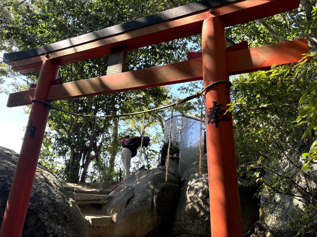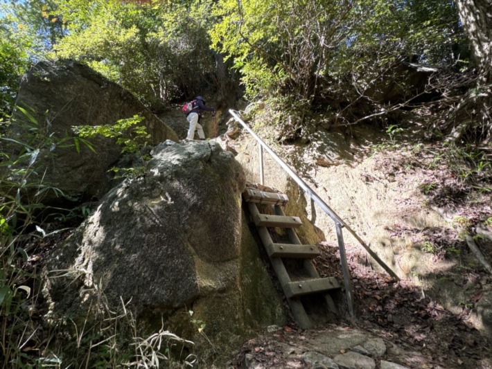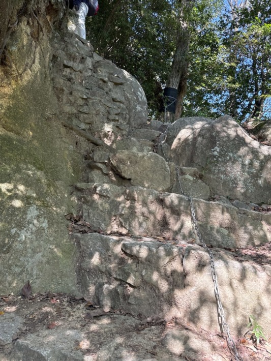 次いで数段の岩登り、鎖もあり楽に上へ…