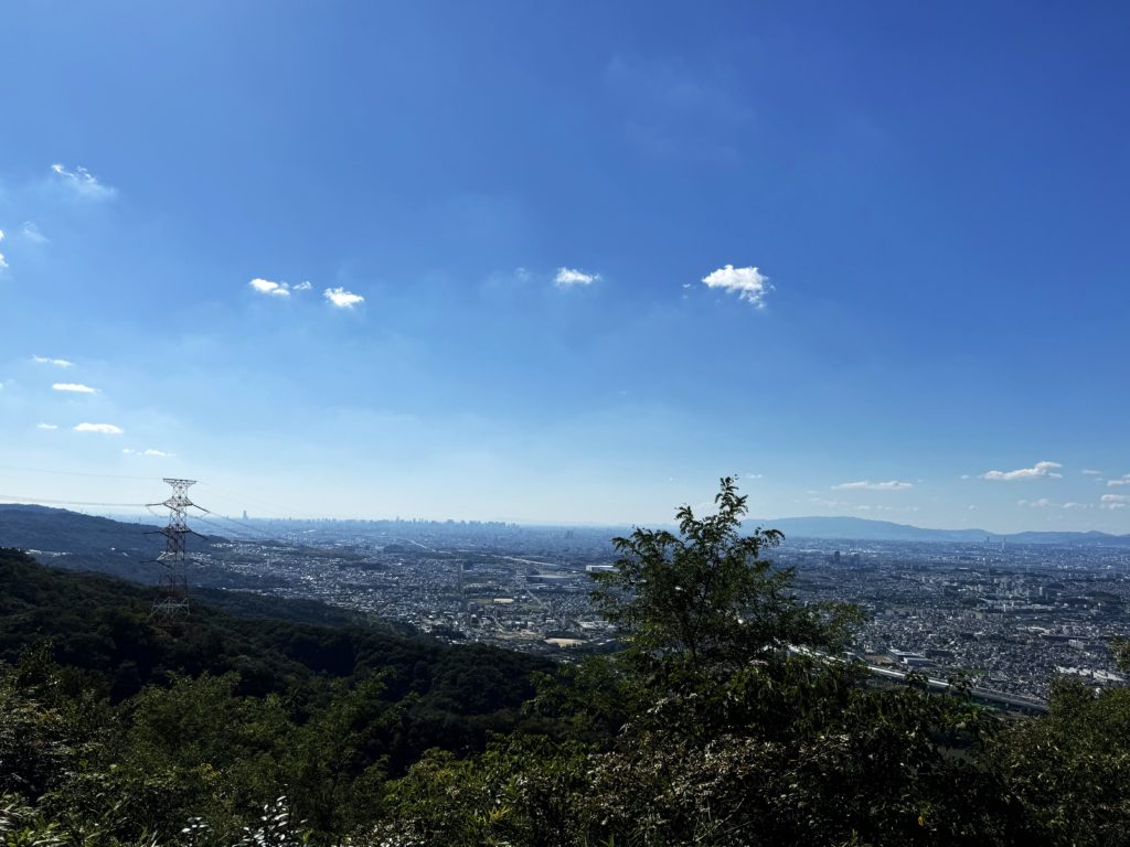 振り返って南西の方角には、北摂から左へ大阪の街並み…六甲山がひときわ高い
