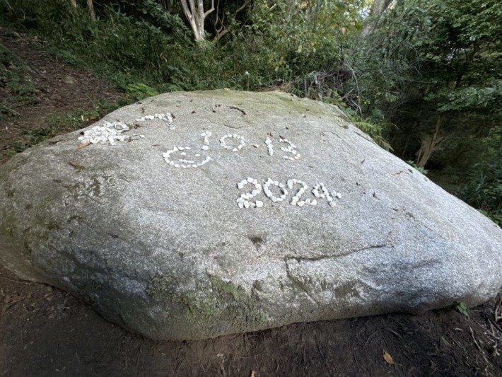 往時に岩の上で若者が食事をしていたが、その方の"作品"かな😊