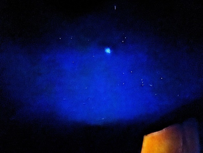 (iPhoneで3秒撮影だが画像上に線上の光…衛星?ステーション?飛行機?)