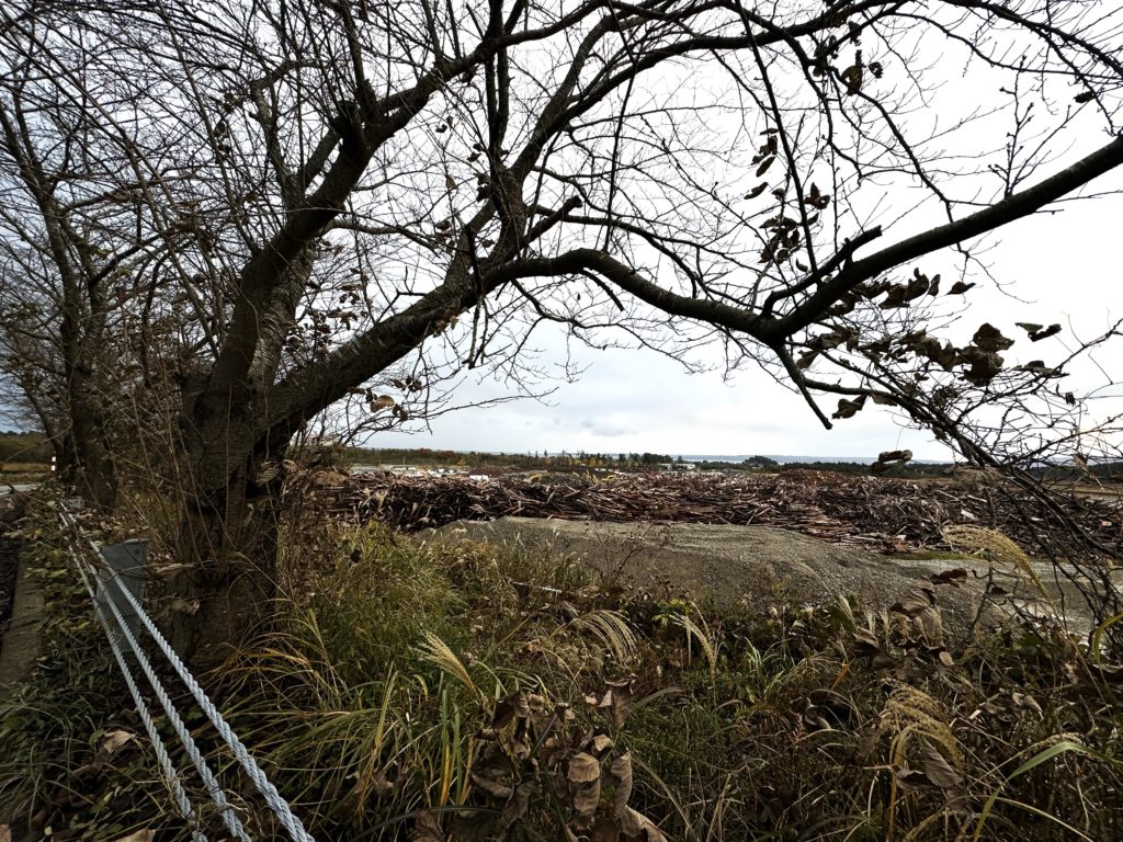 神戸の時に湾岸にうずたかく積まれた解体木材を見ていたが、比べる対象にはならないとしても、今のこちらの状態は解体や搬送がが進んでいない現状を示しているようだ。
