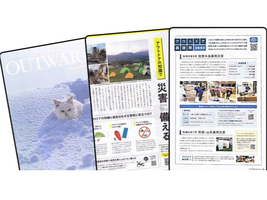 ・モンベルでは「アウトドア義援隊」通じて被災者支援のための援助金の受け付けを行っているが、ポイント寄付も可能。