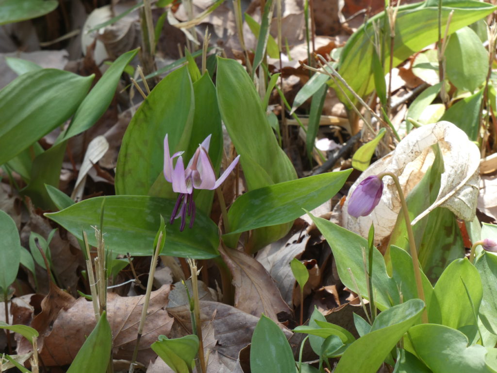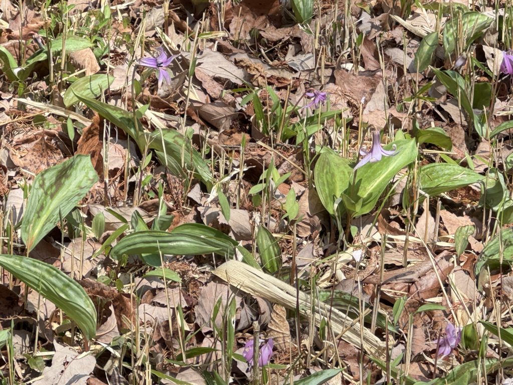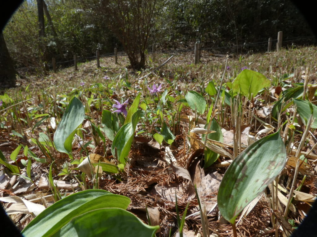 「カタクリの森」と表示されているが、斜面の柵で囲まれたエリア…数はそれほど多くはないが咲いている….