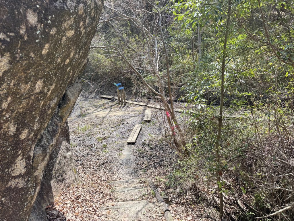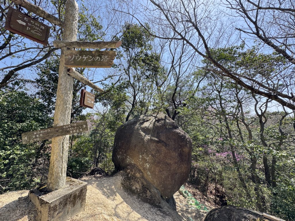 たくさん方向標識のある分岐に登り口…草原広場へのルート…急坂と鎖場のちょっとハードでおもろいコース😅